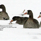 This pic shows some of the flock of 12 Greater White-fronted Geese that are wintering in Canon City. The second goose from the left is one t...